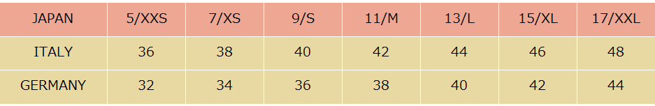 最近は、ネットでのお買い物をされる方も増えていますね。輸入物はイタリア、フランス、アメリカなど、生産国によって、それぞれ異なったサイズ企画がございます。また、同じブランドでも、シーズン・デザインによってサイズがまったく違う事も多いです。